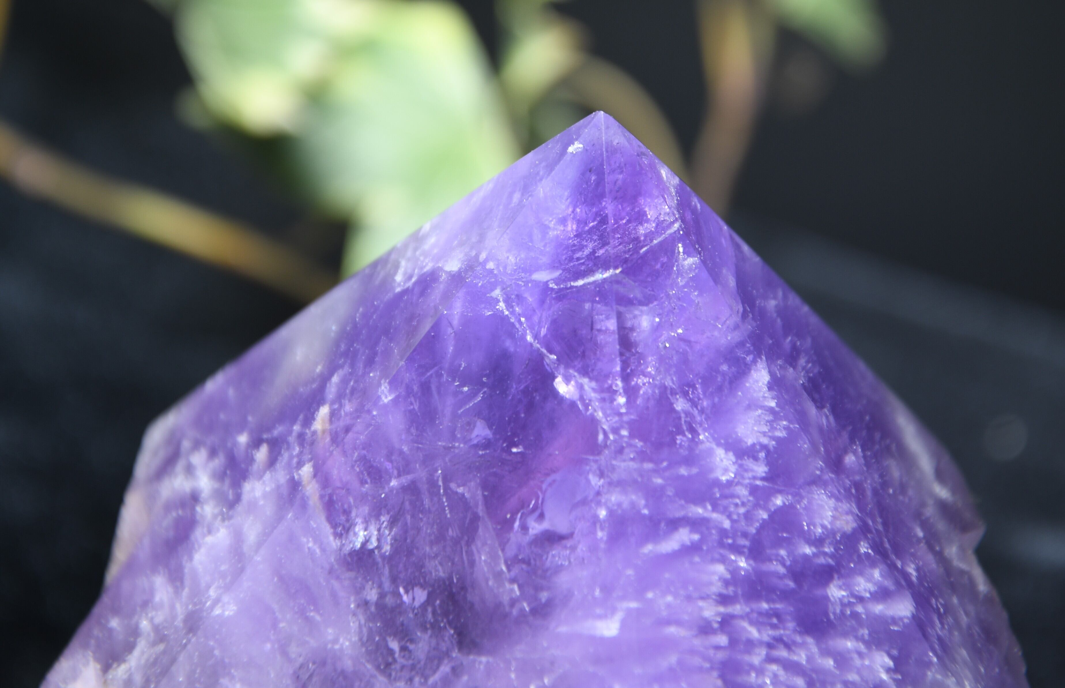 このアメジストの側面に刻まれた特殊な凹凸は、宇宙の全記憶であるアカシックレコードの層を彷彿とさせ、そこに記された膨大な知へのアクセスを予感させます。この石が湛えるのは、幾重にも美しく編み上げられた多層的な叡智です。それは、数学的な緻密さで宇宙の真理を解き明かしたピタゴラスの峻厳な知性と、万物と語り合った聖フランチェスコの無垢な慈愛、そしてバッハの旋律のような完璧な宇宙の秩序が、一つの結晶の中で調和を保っている状態と言えるでしょう。