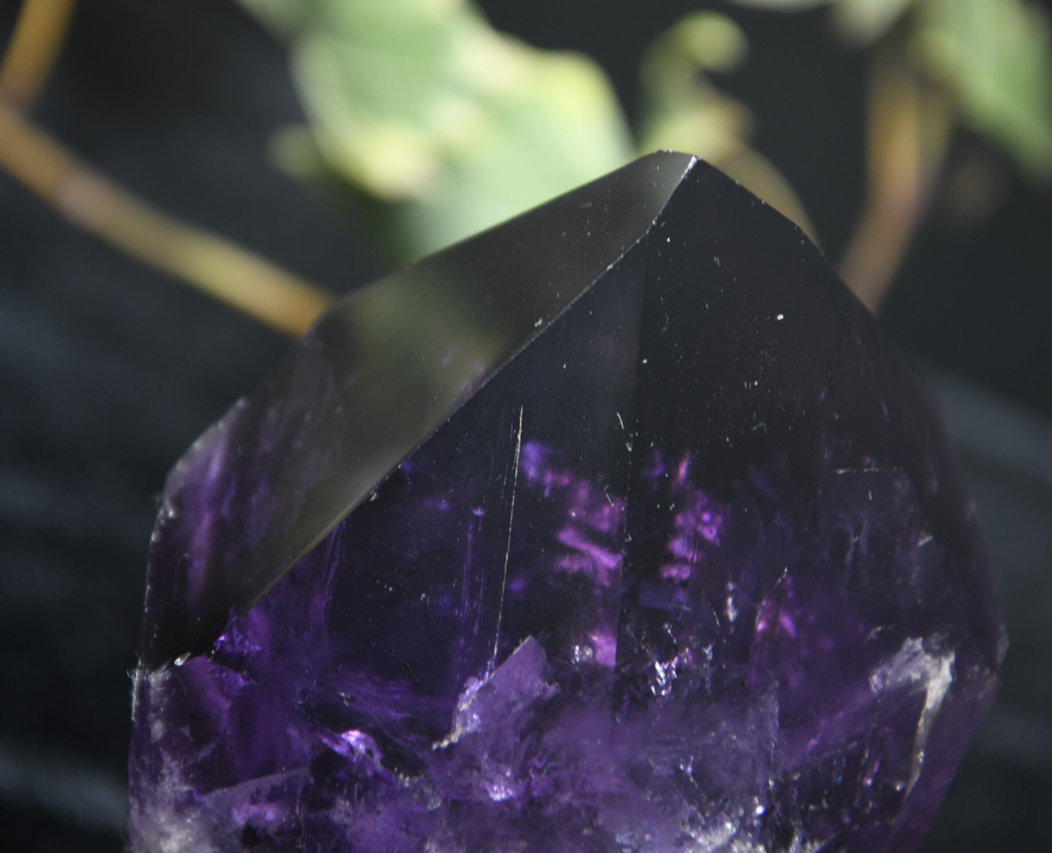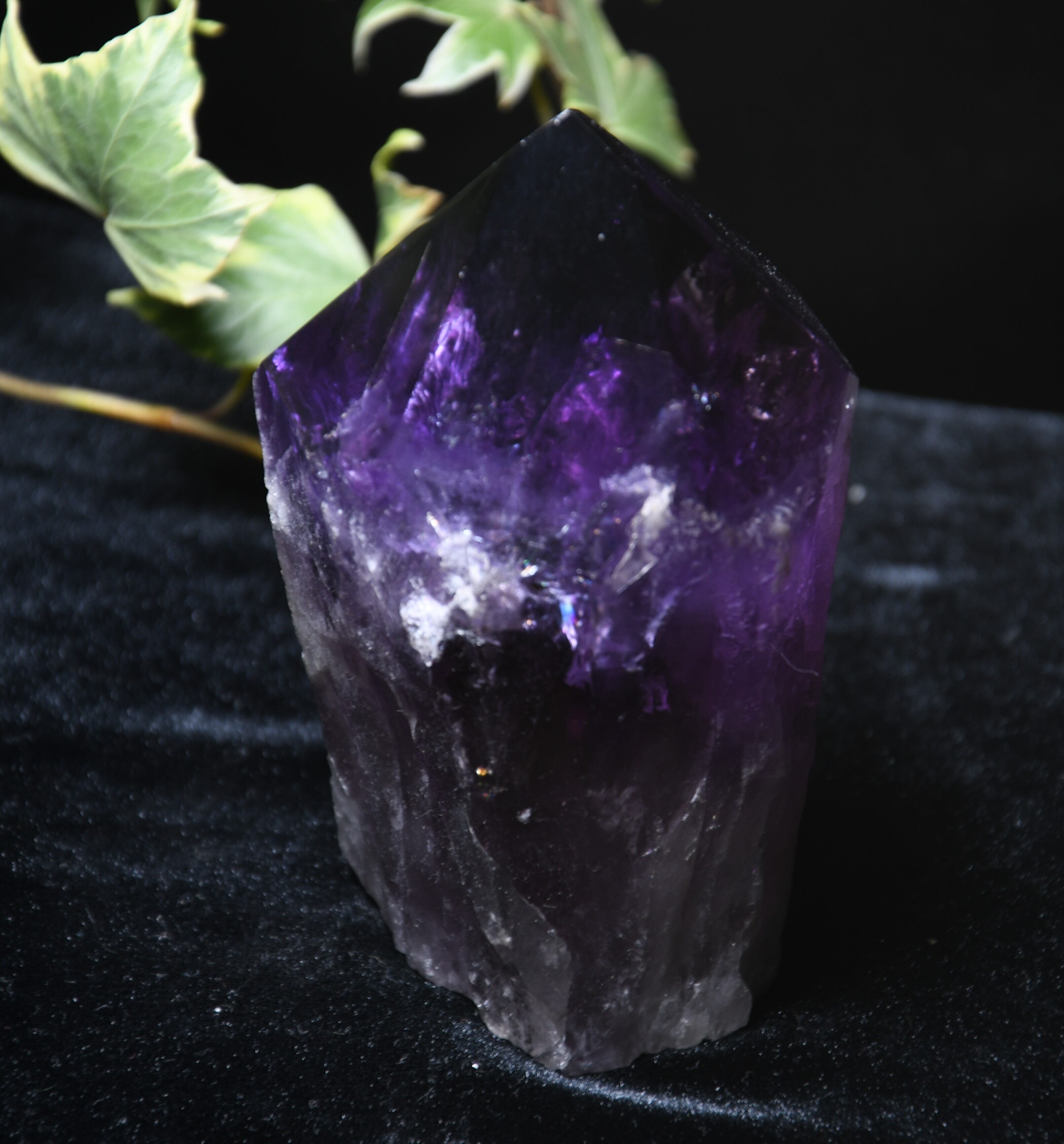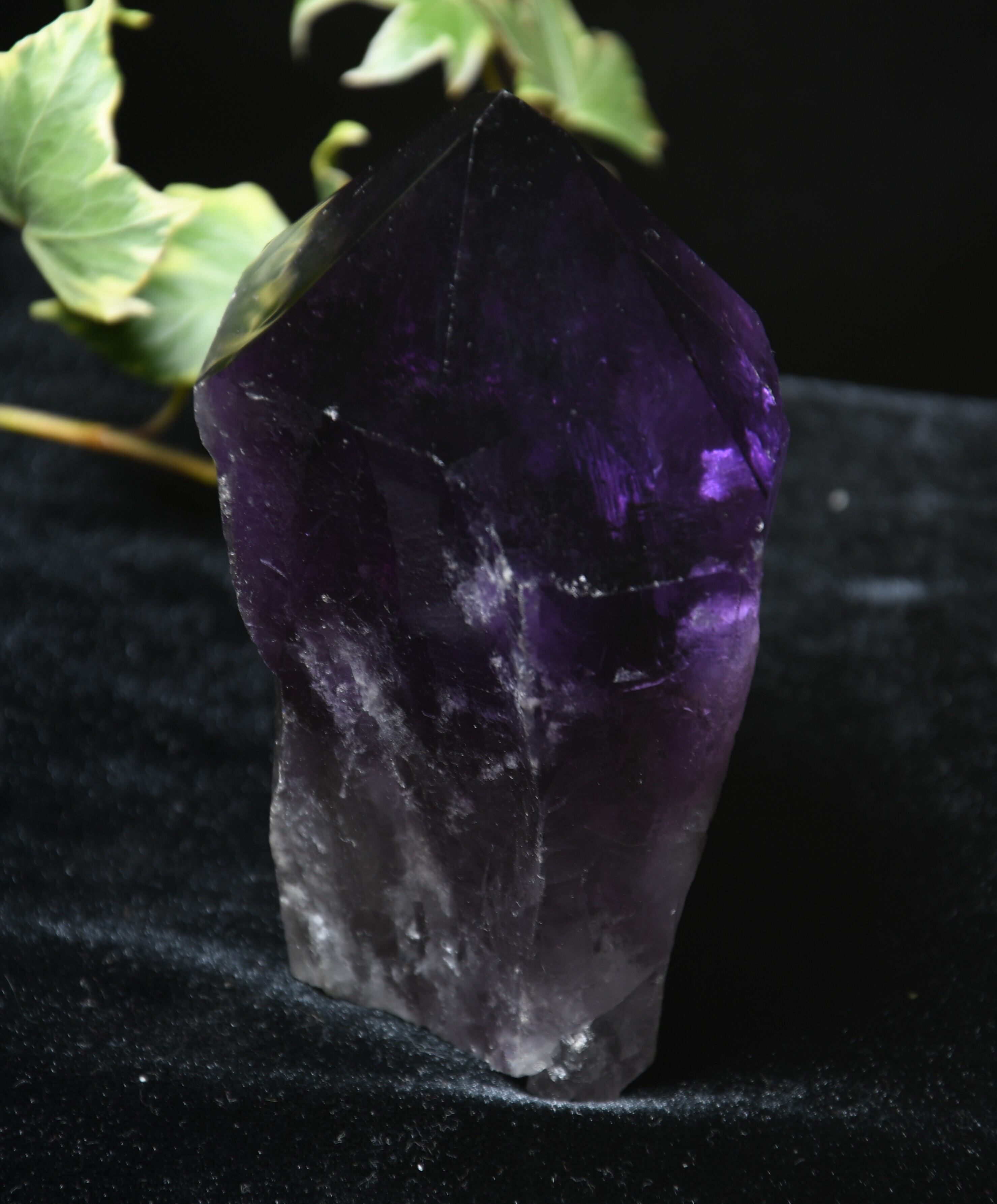 この石の驚異的な透明度は、周囲の雑音や政治的な圧力に一切曇らされることのなかった、ジャンヌの純粋な信仰心そのものを表しています。また、石の奥底に宿る深く吸い込まれるような紫の色調は、火刑の炎に包まれてもなお自身の直観を曲げなかった強靭な精神と、彼女が自力でたどり着いた神の真実を象徴しています。