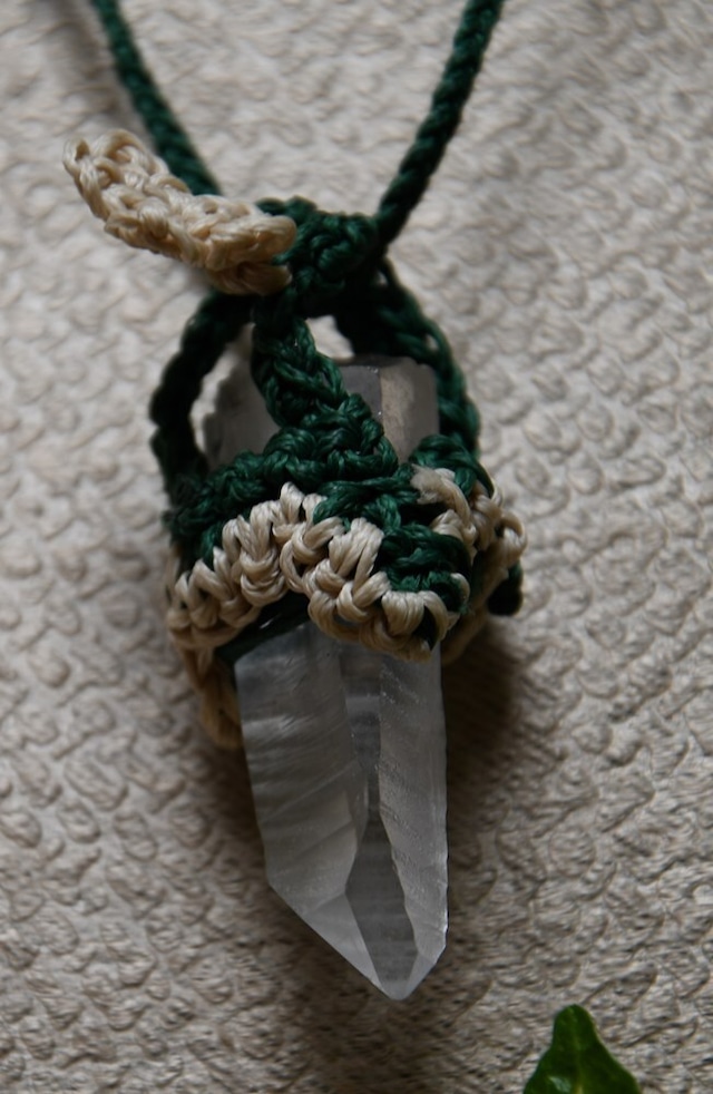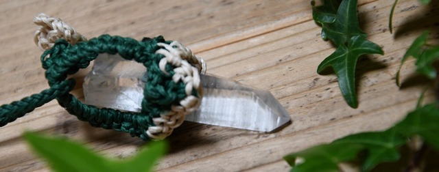 レムリアンシードクリスタルのマクラメ編みペンダントを作成いたしました。まだ試作品ですので、大変お求めやすい価格でのご紹介となっております。